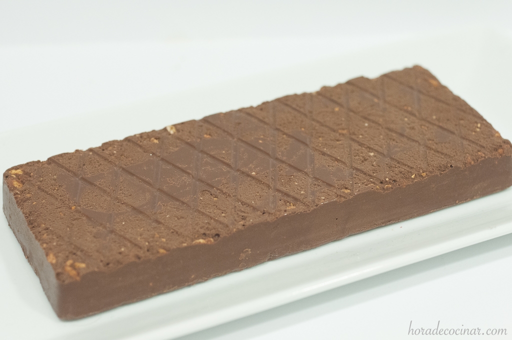 Poner la mezcla en un molde de turrón y dejar enfriar completamente antes de sacarlo del molde.